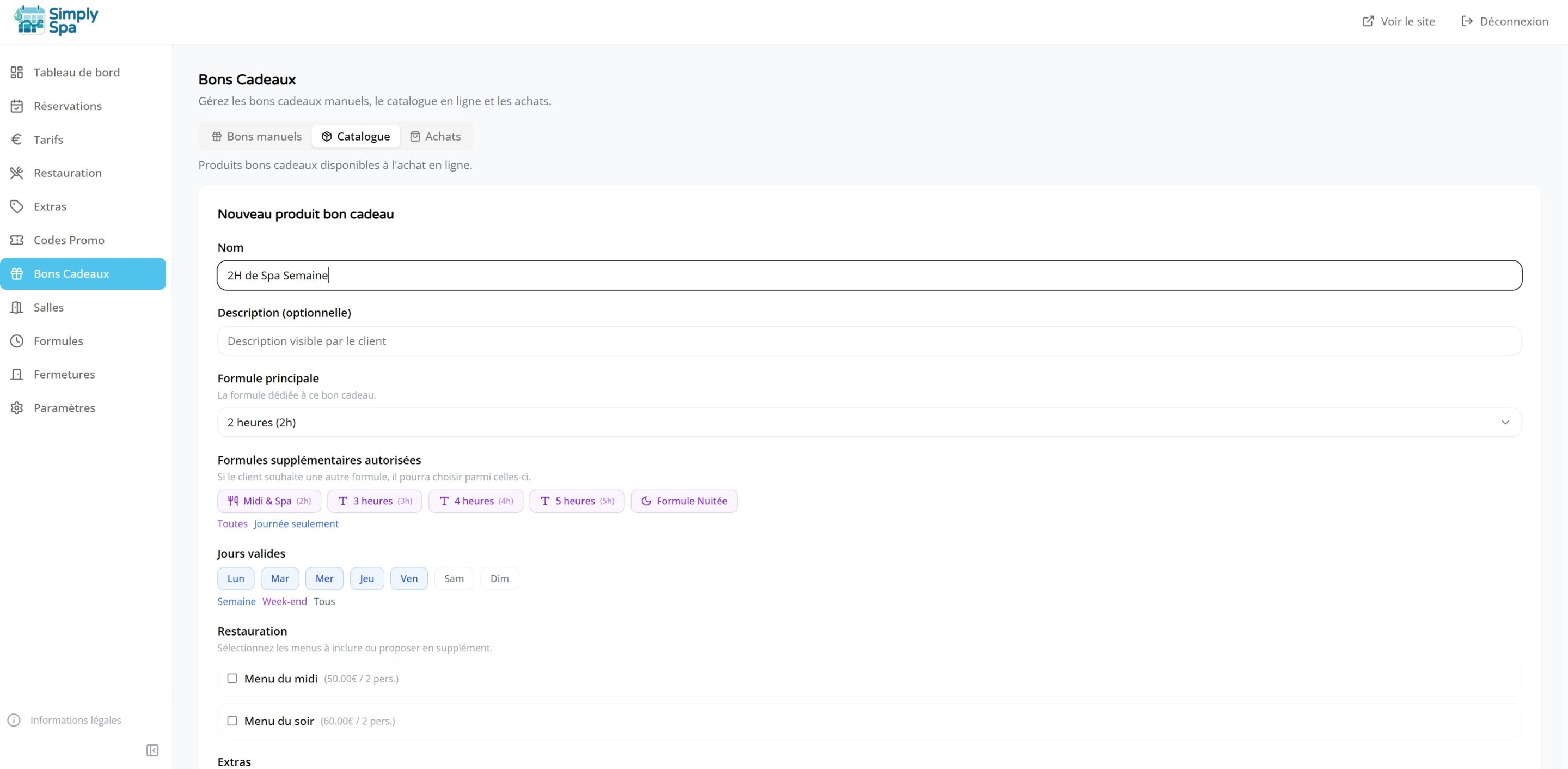 Chez Simply Spa, nous considérons qu'une carte cadeau ne doit jamais cannibaliser vos jours de forte demande. C'est pourquoi notre logiciel intègre un moteur de règles d'utilisation ultra-fin, introuvable sur les CMS généralistes.