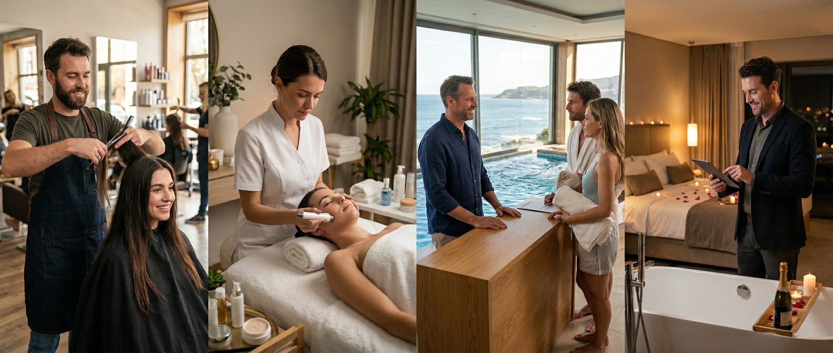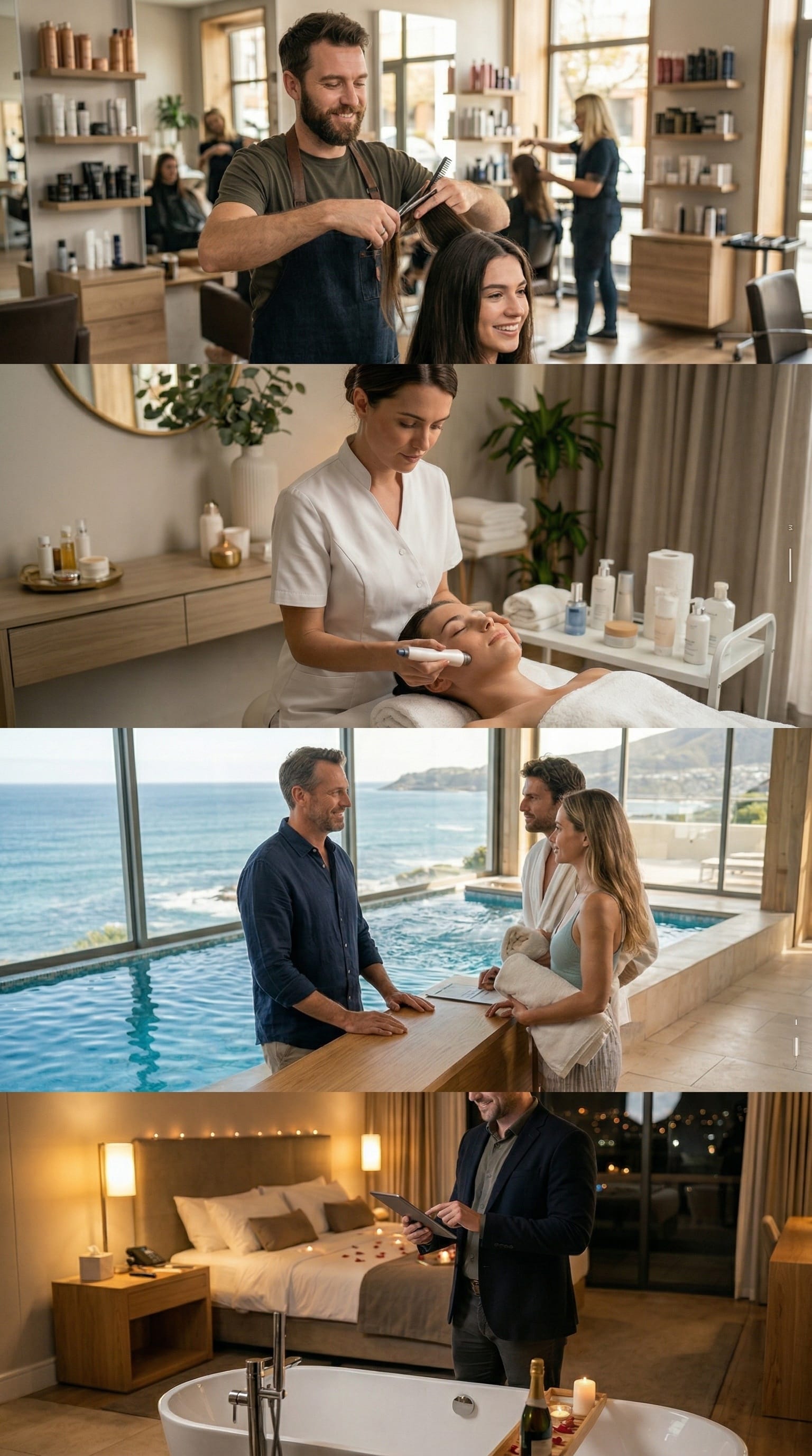 - Synchronisation Globale : Connecté avec Airbnb, Booking et autres plateformes hôtelières. La réservation d’un soin bloque automatiquement la cabine correspondante, tout comme une nuit vendue met à jour vos disponibilités.